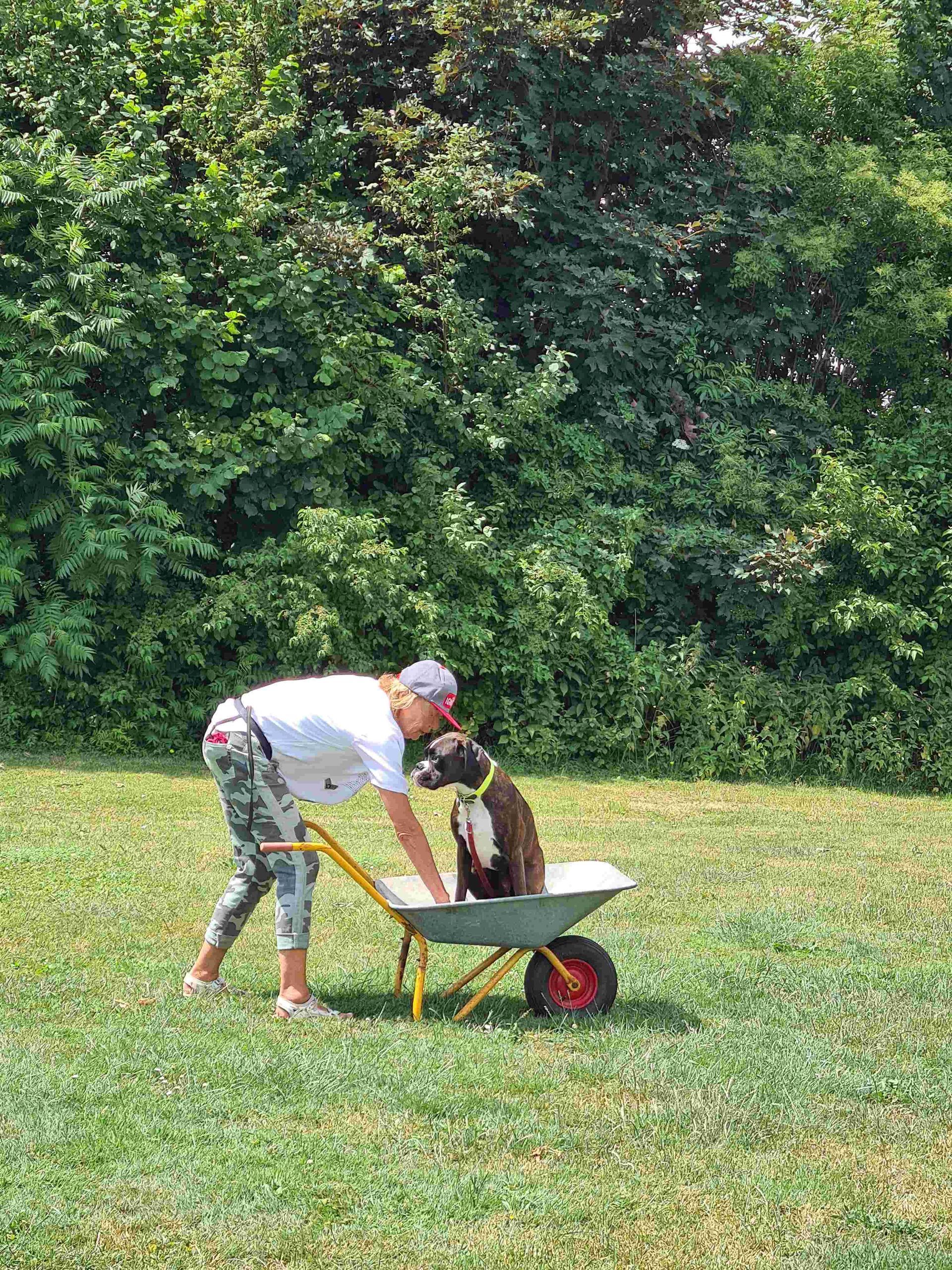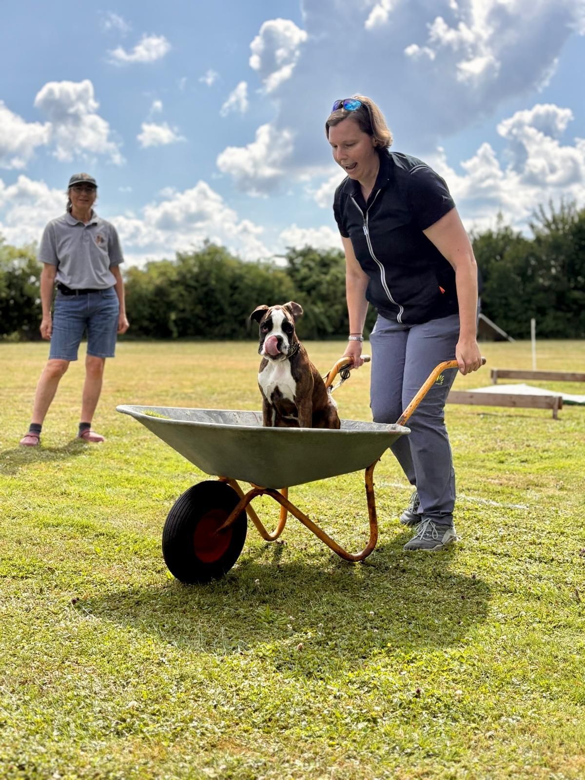 Die Idee für die Boxer-Wiesn: Unsere 6 Helferverstecke verwandeln wir in 6 verschiedene "Wiesn-Buden" . In einem Halbkreis werden auf unserem Übungsplatz eine Dosen-Bude, eine Dart-Bude, eine Nagel-Bude, eine Nasch-Bude, eine Waffel-Bude und eine Hau-den-Lukas-Bude nur für unsere Kids, angeordnet. Am Nachmittag findet ein 55 m-Hunderennen statt, wobei die Startlinie für die Veteranen und die Jüngsten um 10 m verkürzt ist. Unser Christoph fotografiert wieder super fleißig und über 100 tolle Sachspenden von unseren Mitgliedern können in den Buden und dem Hunderennen erspielt werden. Unvergesslich sind auch die vielen kulinarischen Köstlichkeiten: Wiesn-Hendl, Wiesn-Brezn, verschiedene Salate & Kuchen und Ulrikes suchtmachender Nachtisch. In den Buden werden frische Waffeln gebacken, Zuckerwatte und Popkorn hergestellt, selbstgemachte Schokofrüchte und anderes Naschwerk ausgegeben. Schade, dass so ein toller Tag soooooo schnell vorübergeht!