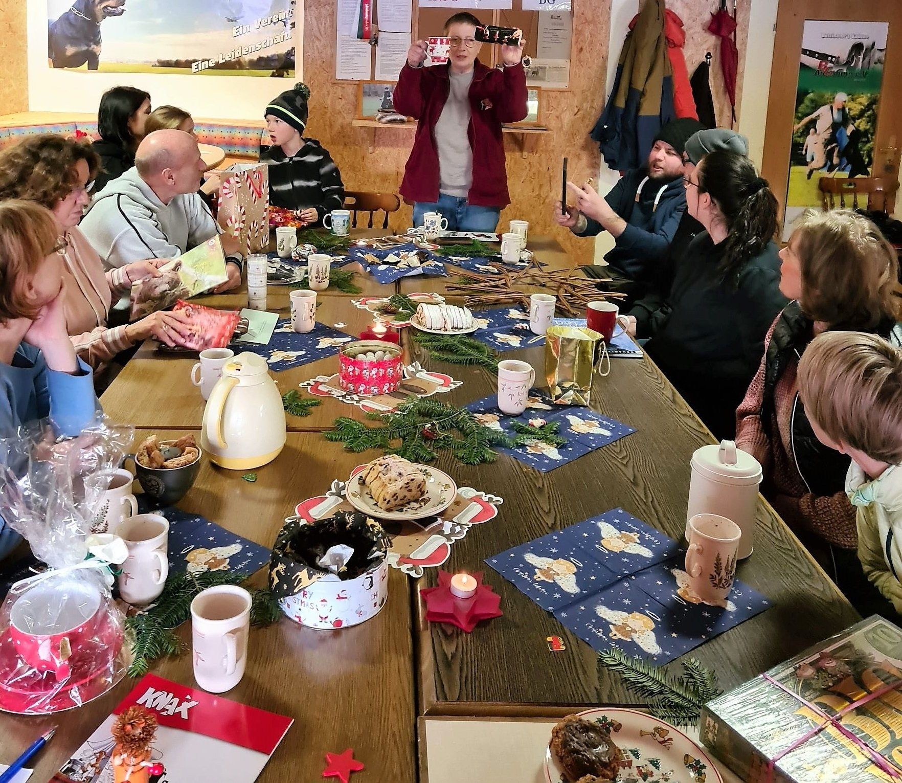 Im warmen Vereinsheim feiern wir heute Weihnachten und genießen kurzweilige, wunderschöne Stunden mit vielen Leckereien, Glühwein, singenden Hunden und mega tollen Wichtelgeschenken.
