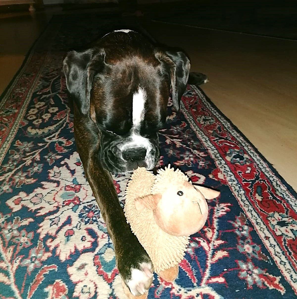Bis 14 Uhr trainieren wir fleißig mit unseren Boxern - abwechselnd bei Sonnenschein und heftigem Regen; danach stärken wir uns mit super leckeren Penne á la Nicole. Als nächstes dürfen unsere Samtschnuten auf dem Agilityplatz gemeinsam toben und gegen 15.30 Uhr warten weihnachtlich geschmückte Tische, Glühwein, Kinderpunsch, Plätzchen und Christstollen auf uns. Die 1. Vorsitzende stimmt uns mit einem selbst verfassten Weihnachtsgedicht ein; für die Kinder im Dauereinsatz sind drei singende Hunde. Geschenke, Spiel und Spaß mit dem sehnlichst erwarteten "Schrottwichteln" runden unsere schöne Weihnachtsfeier ab.