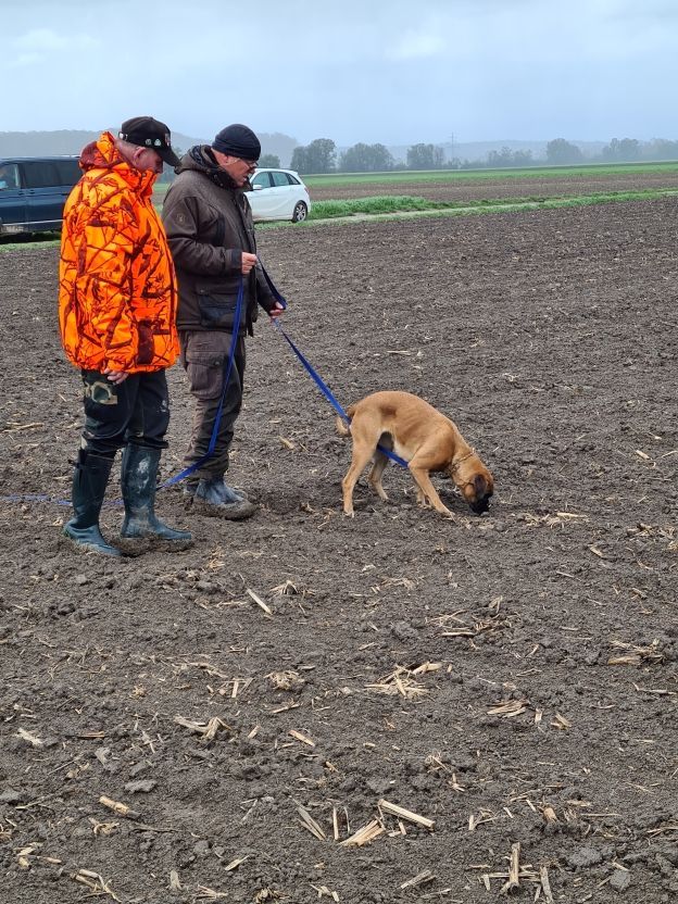 Aller Anfang ist ackern – nach diesem Motto verlief am zweiten November-Wochenende 2021 ein hoch informativer, arbeits- und erfolgreicher Fährten-Lehrgang in unserer Gruppe Fischach. Zehn Boxer mit unterschiedlichem Ausbildungsstand, dazu sieben Rottweiler, wurden unter der Anleitung von Ausbilder Karl Heinz Nieratzky aus Heidelberg sozusagen auf die richtige Spur gebracht. Das Besondere: Geübt wurde nicht in der Wiese, sondern auf Acker, Gelände, das sich gerade zu dieser Jahreszeit hervorragend anbietet. „Schweinekalt, nass und matschig, aber es hat unglaublich viel Spaß gemacht“, so der Kommentar einer Teilnehmerin, die, wie alle anderen Hundeführer, nach dem theoretischen Teil Freitagabend am Samstag buchstäblich in die Praxis eingeführt wurde. Und am Sonntag in dicken Gummistiefeln in der schwarzen Erde Tritt für Tritt selbst die Fährte für ihren Hund legte.