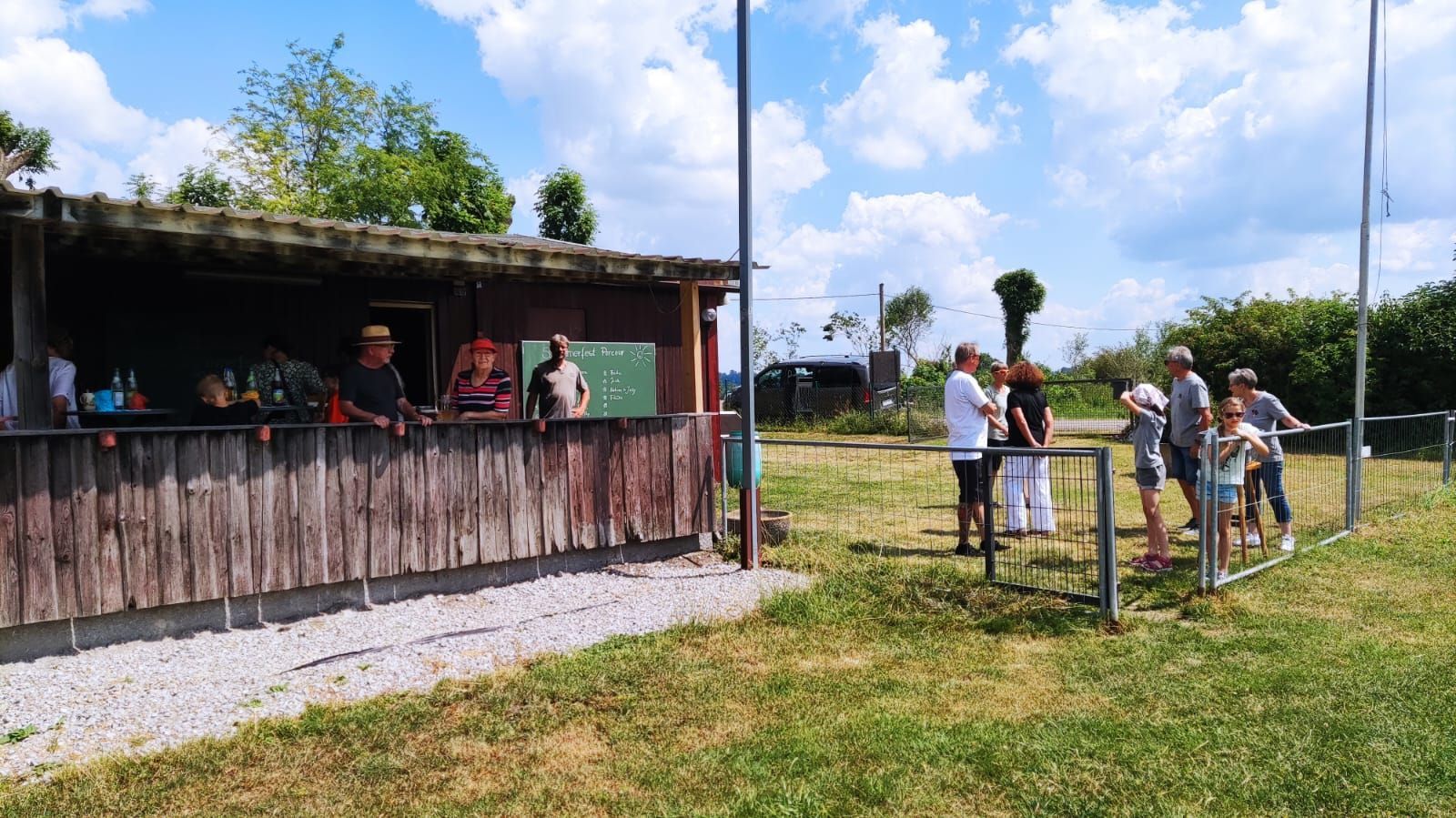 Nach einer ausführlichen Unterweisung zu den wichtigen Verhaltensregeln wegen Corona, stoßen wir (23 Erw. und 8 Kinder) mit Sekt/O-Saft auf unser 1-jähriges Bestehen an. Das Sommerfest begehen wir mit Martinas Überraschungs-Parcours (kleiner Slalom, 2 Hürden, Agility-Tunnel, Wackelteller auf dem der Hund "Sitz" machen soll und am Schluß ein Strohhaufen mit verstecktem Pansen). So viel Spaß macht Hunger - unser Grillmeister Ralf zaubert saftige Steaks, Würste und Grillkäse zu den mitgebrachten mega-leckeren Salaten. Weiteres Highlight für die Kinder ist der Eierlauf mit Hund. Den Tag über verkaufen die Kinder Lose und so können wir uns am Nachmittag auf die schönen Tombola-Geschenke freuen! Bei Kaffee und feinsten Kuchen lassen wir den traumhaften Tag ausklingen.
